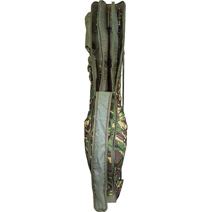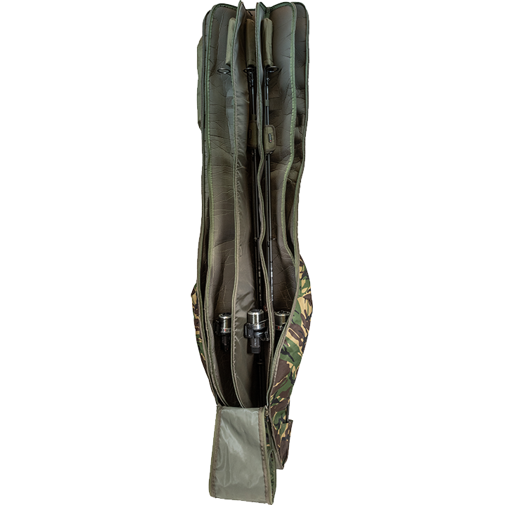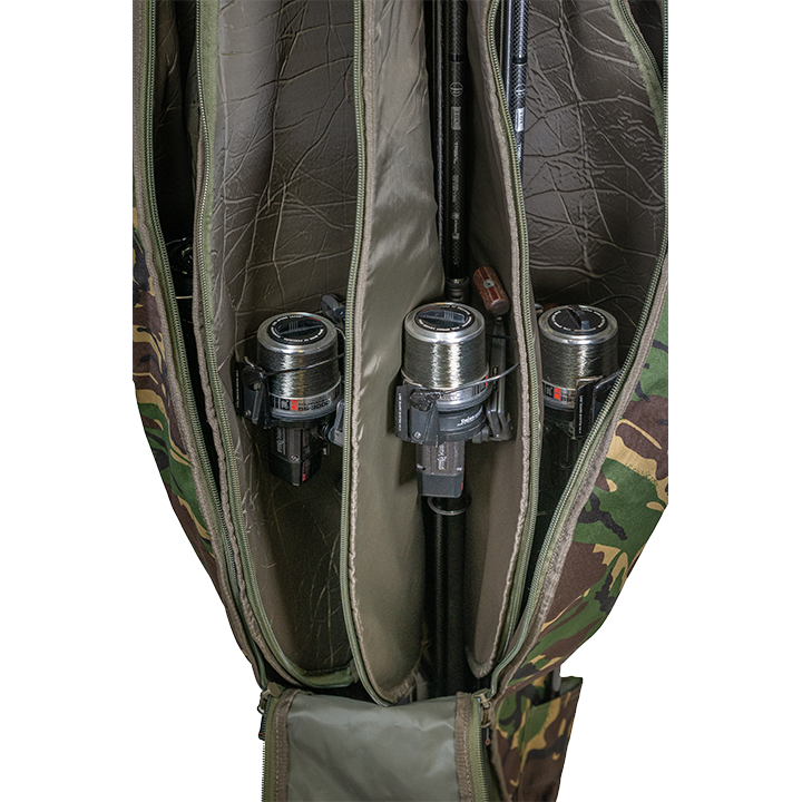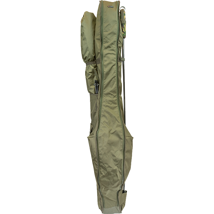Obsahuje plne polstrovaný, jednoduchý vstup s dvojitým zipsom do hlavnej priehradky.• Materiál Cordura 600D• Vojenské technické zipsy• Nylonové klipy• Plne polstrovaný• Posilnené napínanie• Vnútorný priestor pojme päť 12ft prútov• Jedno veľké vonkajšie vrecko na zips• Jedno veľké vonkajšie vrecko na brolly• Nakladacia rukoväť• Extra vonkajšie vrecko na prúty s pridržiavacou slučkou• Vrecko na podberák a pridržiavací popruhCelková dľžka: 200cm