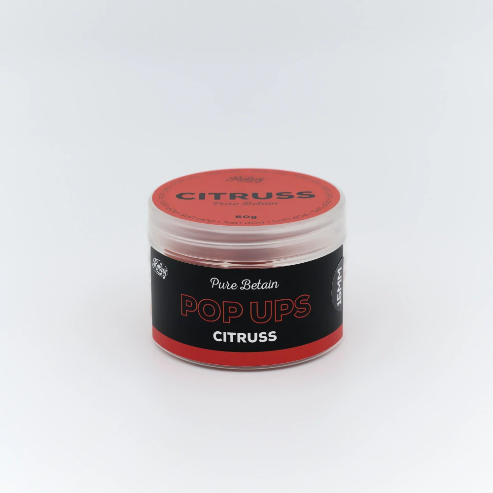 Citruss – Už legendárne potápavé boilies, ktoré každým rokov dokazuje svoju schopnosť dostať na breh aj tie najväčšie kapry, si zaslúžilo aj jeho plávajúcu verziu. Vyladená kombinácia esencií z exotických a tropických plodov, posilnená kombináciou niekoľkých citrusových esenciálnych olejov. CITRUSS pop up je konečne tu!