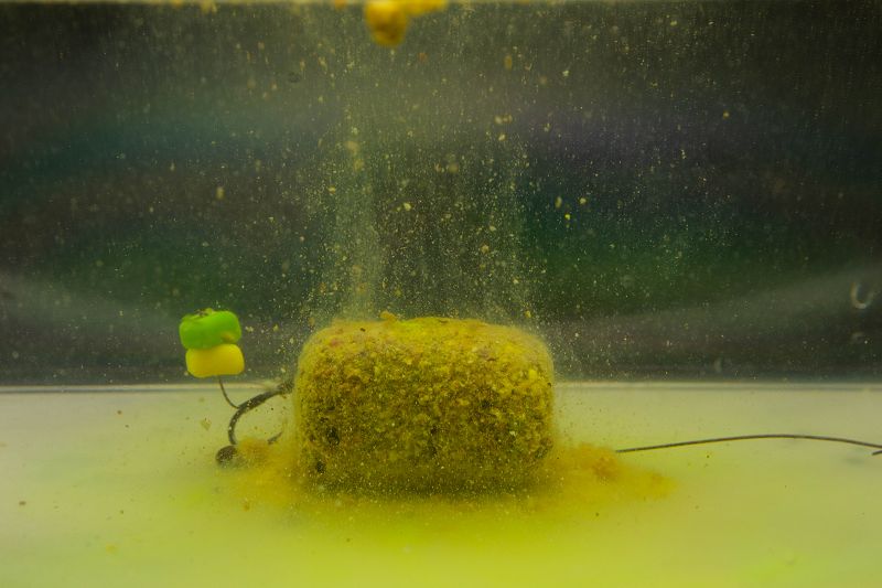 Návnada Stick Mix s vo vode rozpustnou múčkou, hrubými časticami a stúpajúcimi prísadami, ktoré vytvárajú stabilne pracujúci skupinový dávkovač krmiva vo všetkých vodných vrstvách.