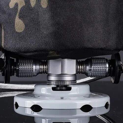 K dispozícii tri 7/16 závitové ventilové výstupy, ktoré je možné použiť ako jednotlivé, tak v páre či všetky dohromady. Dve bočné je možné použiť práve napríklad na variče pre komfortnejšie varenie a vrchné potom treba na upevnenie lampy a pod.