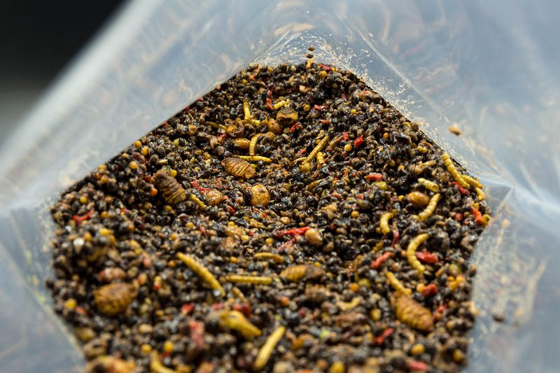 Celé larvy komárov, múčiare, priadky morušové dodávajú zmesi vysoké percento dôležitých proteínov a polynenasýtených mastných kyselín. Dôležité aminokyseliny ako glutamín, lyzín, asparagín, alanín, atď. signalizujú kaprovi prírodný zdroj potravy.