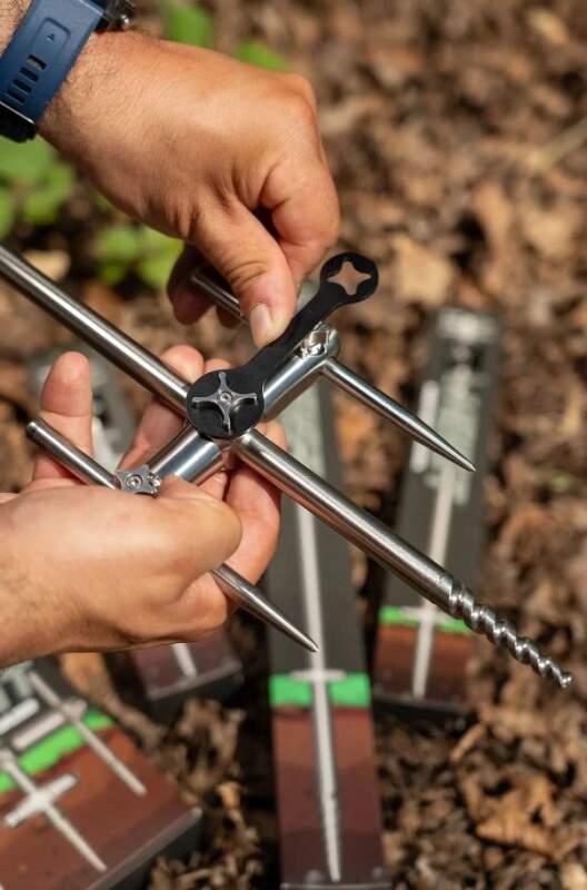 S pohyblivými hrotmi Dual Stainless môžete preniknúť do zeme na oboch stranách vašich Banksticks pre optimálnu stabilitu.