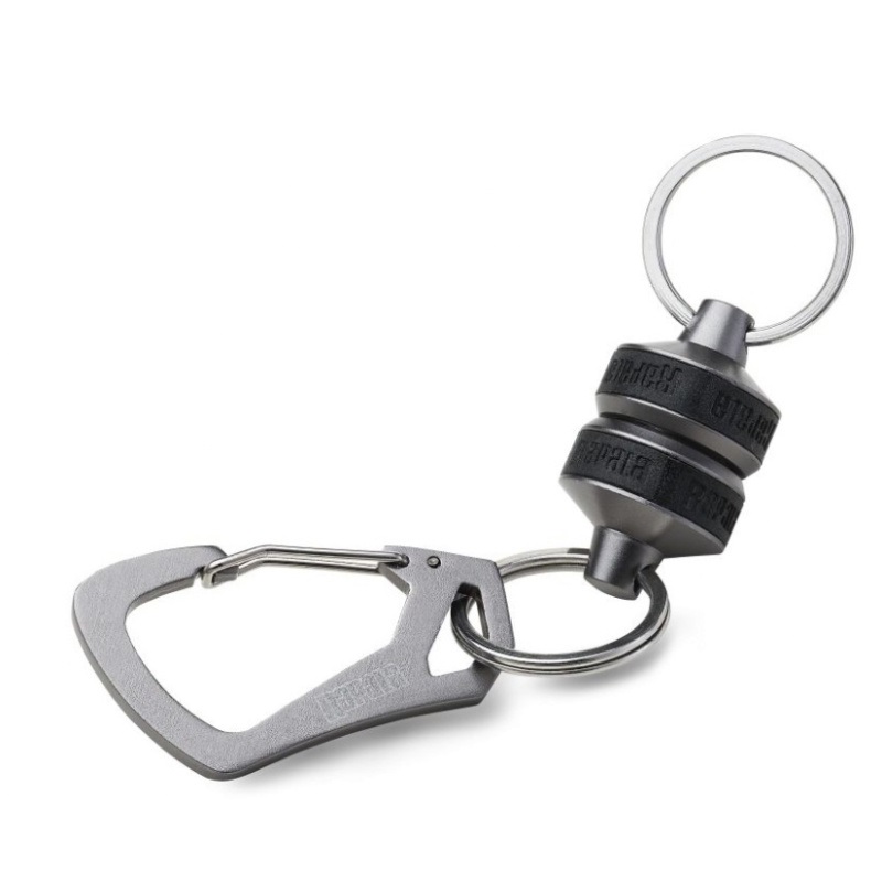Veľmi silný magnetický klip s mechanickou karabínkou, ideálny pre zavesenie podberáku či iných veľkých pomôcok a nástrojov na rybársku vestu...
