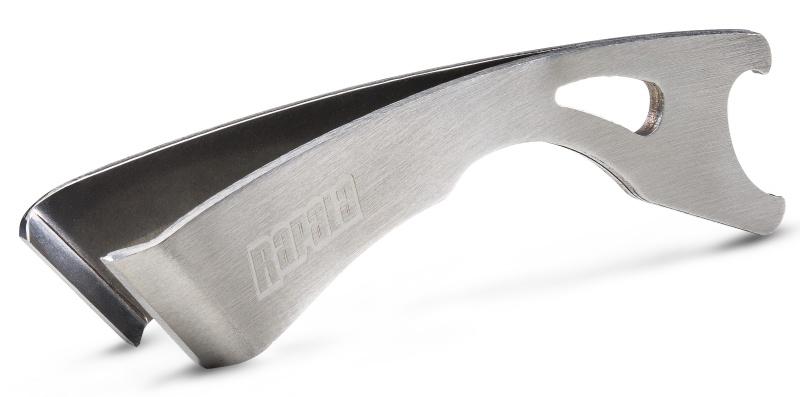 Mini kliešte s ostrými brúsenými čeľusťami slúžia k ľahkému strihaniu monofilných vlascov a väčšiny splietaných šnúr. Pre ľahkú a manipuláciu má nástroj z odolnej nerezovej ocele ergonomicky zakrivený tvar. Na opačnom konci klieští je výrez na otváranie korunkových záverov fliaš.